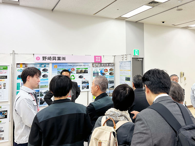 当社の展示ブースにおいては「エコリサイクルソイル(調質改良土)」、「園芸用土(エコ黒土)」、「園芸用土(芝目土)」の製品を展示し、お立ち寄り頂きましたお客様に映像を交えて紹介しました。当社の製品が広く周知され、ご理解いただけていることが実感できた有意義な2日間となりました。
